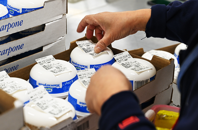 取扱食品は、加工食品(チーズ・バター・ハム)、菓子(チョコレート)、ワイン、ドライフルーツ、缶詰、瓶詰など多岐にわたります。品質保持を第一に考え、0℃、10℃前後と商品にあわせた温度設定の下、流通加工を施します。